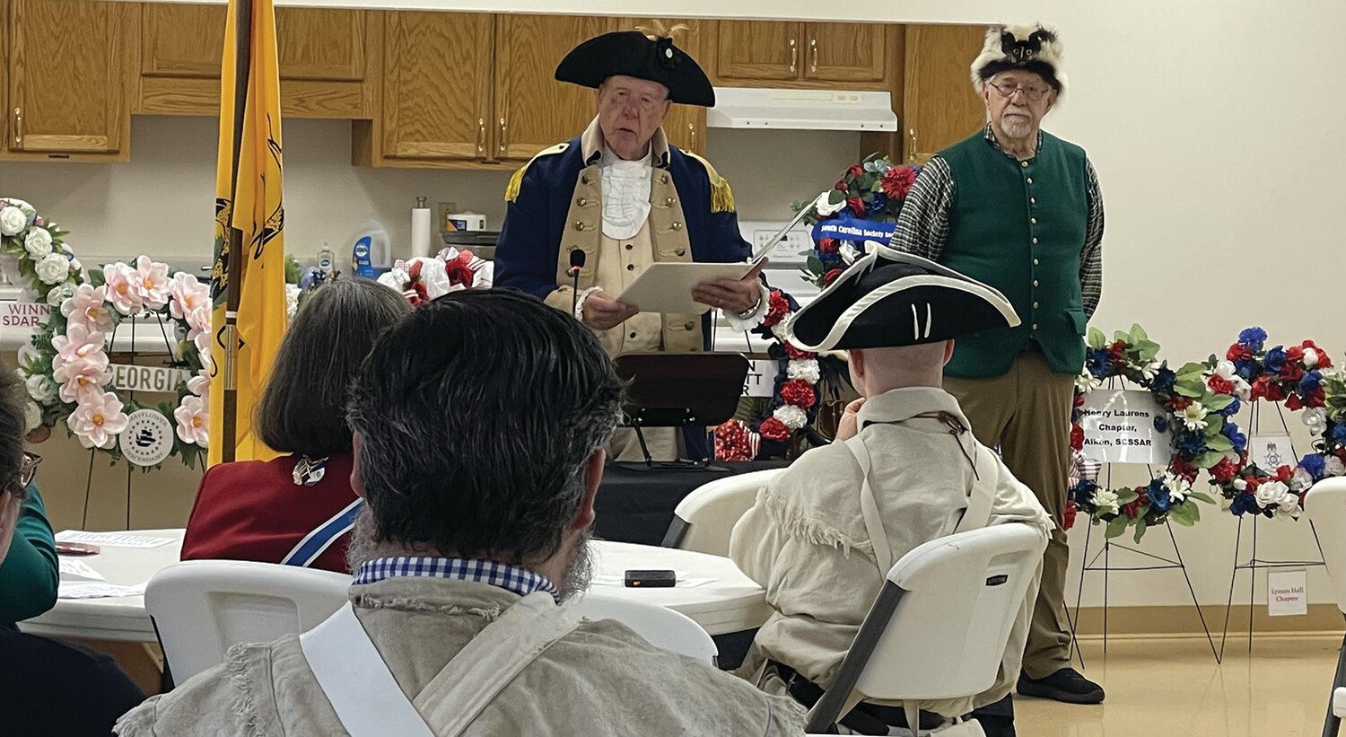 On Sunday, September 27, the Brier Creek Artillery consisting of five cannons and 10 crew members, traveled to Lincolnton to attend the grave marking of five American Revolutionary War Patriots. Those Skunkers were Commander Steve Burke, Dess Smith III, Lee Herron, Don Bazemore, Alton McCloud, Bernard Martin, Bernard Martin II, Benjamin Martin, Ben Creech, Tommy Chapelle, and Emil Decker. After the Church service at St. Paul’s Church, the event was conducted inside because of rain. During the ceremony, each patriot’s biography was read. After the dedication of the Grave Markers, wreaths were presented from over 50 organizations and then mourn muskets was presented by 35 members of the SAR dressed in period uniforms. Taps was then played by Compatriot Don Bazemore on his bugle. Including the militia, Award Winning Georgia Society Color Guard and Brier Creek Artillery, there were 35 SAR members participating. The Patriots that had their graves marked were Hezekiah Bussey, Zachariah Spiers/Spires, Isaac Cliatt, Moses Jones and William Norman. The Little River Chapter organized and carried out the event.