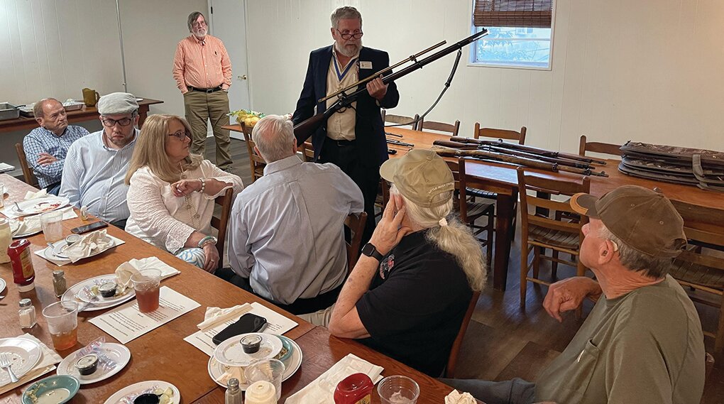 The Wiregrass Chapter, Georgia Society Sons of the American Revolution held its monthly meeting at McKinney’s Pond Thursday, August 14, at 6:30 p.m. With President Steve Burke presiding, they had 22 in attendance including guests. President Steve opened the meeting with a welcome and asked 2nd Vice President Gary Mason to open with a prayer. 1st Vice President Alton Reynolds then led the Pledge to the U.S. Flag and the Pledge to the SAR. They then enjoyed a great buffet meal of shrimp, corn dodgers, French fries and all the trimmings. President Steve then called on Dess Smith to introduce the speakers, Steve Burke and John Derden. Burke is the President of the Wiregrass Chapter and Derden is a member of the Wiregrass Chapter in Swainsboro. Burke and Derden spoke about “Sharp Shooters from the Revolutionary war until today”. President Burke then called on Compatriot Reynolds for a surprise presentation. Reynolds called up President Burke who is the Commander of the Skunk Brigade and the Brier Creek Artillery and is the “go too man” in the SAR. Besides building the first cannon that started the Brier Creek Artillery, he built a second cannon. Wiregrass now has seven cannons in the Brier Creek Artillery and working on more. Burke also made the first “skunk hat” from roadkill and presented it to the late President Henry Wilder Smith, Jr. in 2014. Since then, Burke has made 41 skunk hats with assistance from President Richard Lee Herron of the Brier Creek Chapter. It took 123 roadkill skunks to make those 41 hats. Burke is also the founder of the Award-Winning Skunk Brigade of the Brier Creek Artillery. Reynolds presented Burke with the Bill of Rights Amendment II Trophy which reads a well-regulated Militia, being necessary to the security of a free State, the right of the people to keep and bear Arms, shall not be infringed, December 15, 1791. Congratulations Commander Burke for all your hard work and your leadership.
