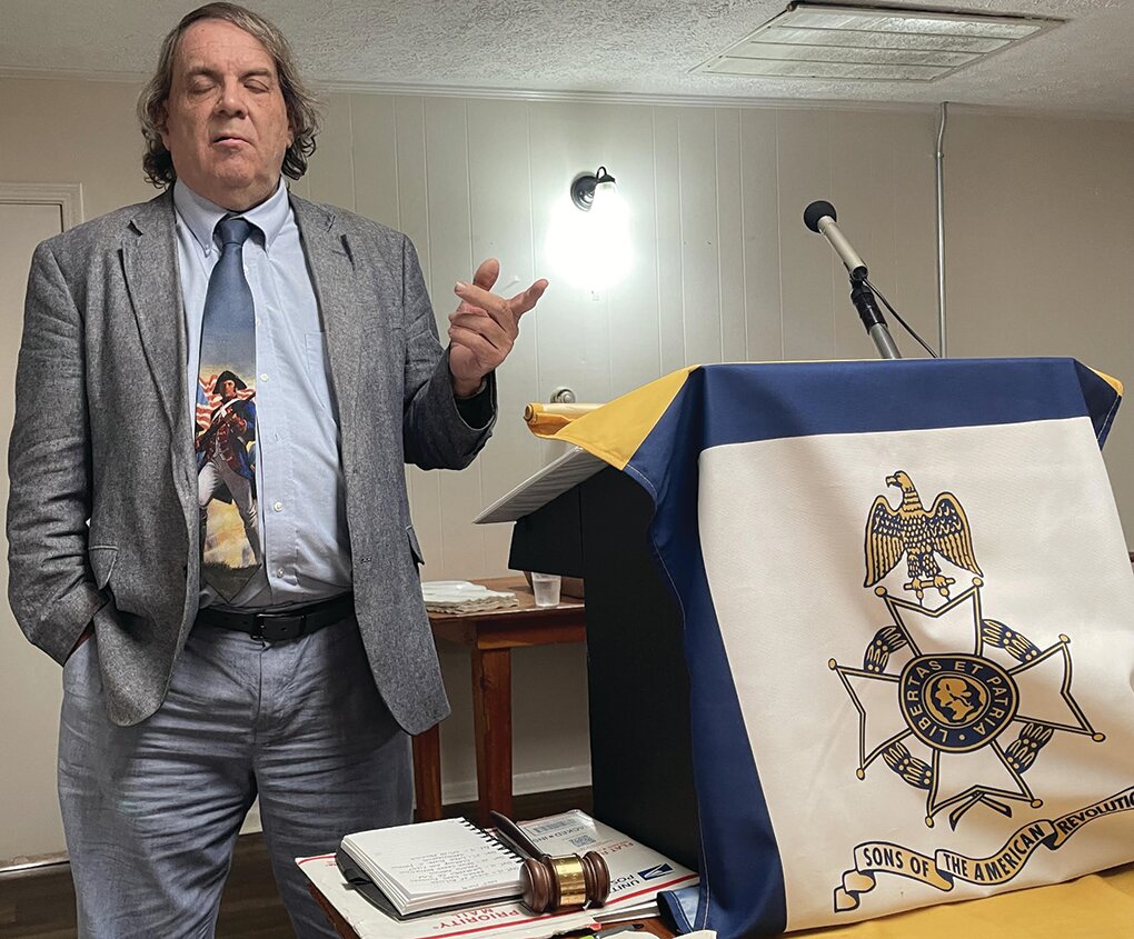 The Wiregrass Chapter, Georgia Society Sons of the American Revolution, held its monthly meeting at McKinney Pond Restaurant in Midville September 11, at 6:30 p.m. With President Steve Burke presiding, they had 20 in attendance including guests. President Steve opened the meeting with a welcome and asked 2nd Vice President Gary Mason to open with a prayer, followed by the Pledge to the U.S. Flag and the Pledge to the SAR. They then enjoyed a great buffet meal of shrimp, corn dodgers, French fries and all the trimmings. President Steve then called on Dess Smith to introduce the speaker, Hu Daughtry. Hu is a member of the Mill Creek Chapter in Statesboro and he and his wife Susan live in Metter. Hu spoke about the “Thain/Greene Family Connection”. President Steve then called on Compatriot