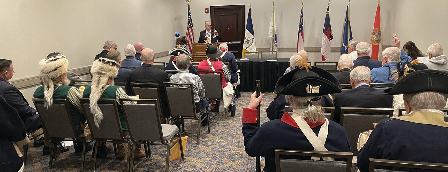 Skunk Brigade members attended the South Atlantic District at the Hilton Hotel in Atlanta. Steve Burke and Dess Smith of the Wiregrass Chapter, and Lee Herron of the Brier Creek Chapter participated in the Award-Winning Color Guard. They discussed events including Elijah Clarke Heroes of the Hornets’ Nest, Kettle Creek Battlefield event, Leadership Conference, 247th Brier Creek Battlefield Event and the Education Day at the Brier Creek Event. The South Atlantic District is made up of members from GA, FL, SC and NC.