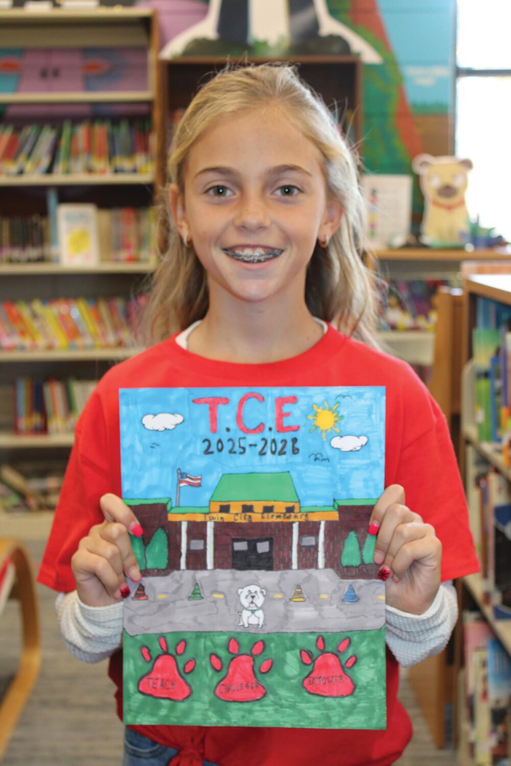 Twin City Elementary recently held its annual Yearbook Cover Design Contest, showcasing the creativity and talent of its students. This year’s winner is fourth-grade student Ayla Marsh. Her artwork will be featured on the front cover of the 2025–2026 yearbook.