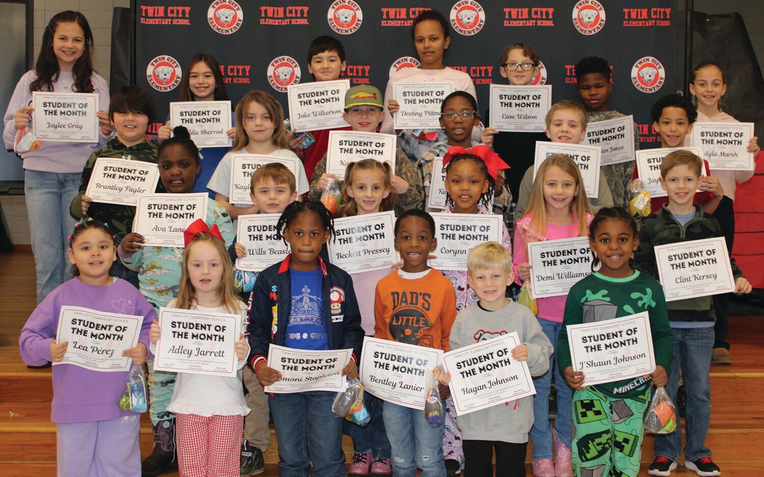 January Student of the Month were Wills Beasley, Nash Davis, Brantley Fagler, Jaylee Gray, Kingston Gunn, Jayce Handsom, Kayleigh Harrison, Adley Jarrett, Hagan Johnson, J’Shaun Johnson, Jayden Jones, Ava Lane, Kaceyn Lane, Bentley Lanier, Clint Kersey, Corynn Love, Ayla Marsh, Lea Pérez, Destiny Pittman, Essie Phillips, Beckett Pressey, Maddie Sherrod, Domoni Stapleton, Jake Wilkerson, Demi Williamson and Case Wilson.