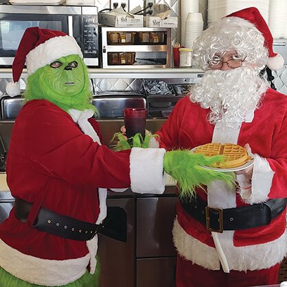 On Wednesday, Christmas Eve, Waffle King will spread holiday cheer with a special evening event from 6 to 8 p.m. The restaurant will be serving green spaghetti and offering free hot chocolate to guests. Children will receive free gifts (while supplies last) and have the opportunity to take pictures with Santa and the Grinch. The family-friendly event is open to the community and promises a fun and festive way to celebrate the holiday.